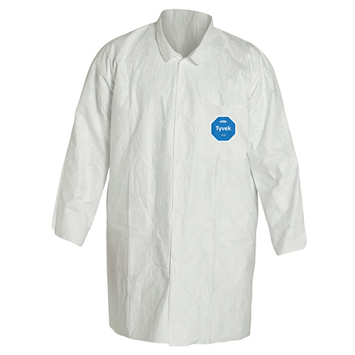 DuPont™ SafeSPEC™ TY212SWHXL003000 Standard Disposable Lab Coat With Laydown Collar, XL, White, Tyvek® 400 Fabric, 39 in L, Front Snap Closure, 2 Pockets, ASTM D1777, ASTM D3776, ASTM D774, ASTM D5733, ASTM D5034, ASTM D257, 16 CFR 1610 Class 1, AATCC 127