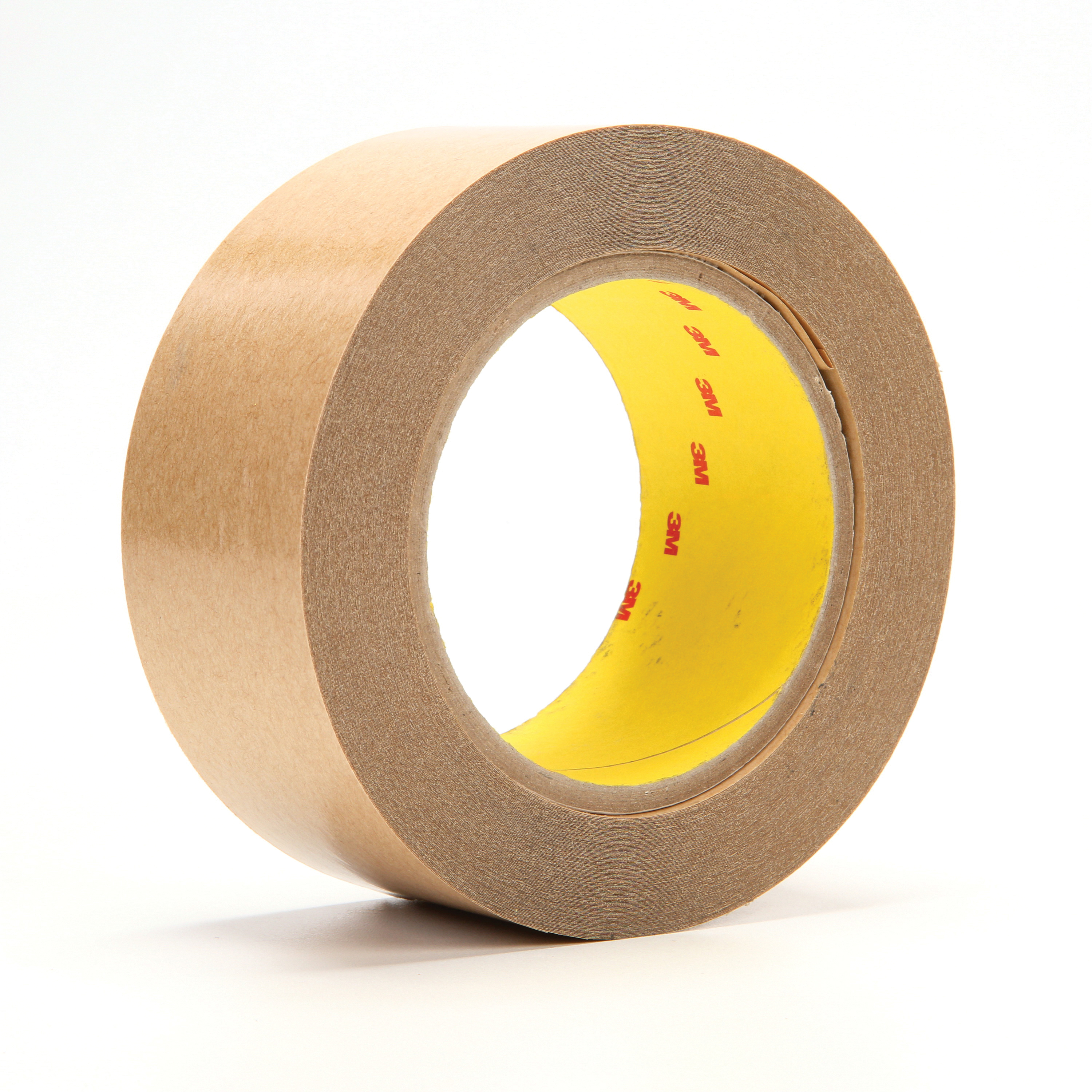 3M™ Adhesive 400 is a medium-firm pressure sensitive acrylic adhesive system. It features an excellent balance of good initial adhesion (quick stick) and good shear holding power. Shear strength is the measure of pull force directed across the bonded surface, forcing the two surfaces to slide over each other. 3M™ Adhesive 400 demonstrates a consistently strong bond across a range of temperatures, up to 250°F/121°C. A thin, tough, polyester film carrier between the adhesive layers improves the handling and strength of the tape. By using a robust 60 lb. densified kraft paper release liner, this tape provides reliable performance for industrial applications such as die-cutting and automated dispensers.