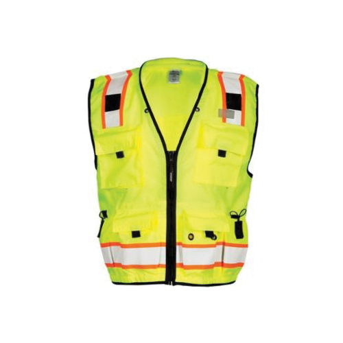 ML Kishigo S5000-2X Professional Surveyor Safety Vest With Trim, 2XL, Hi-Viz Lime, Polyester, Front Zipper Closure, 14 Pockets, ANSI Class: Class 2, ANSI 107 Type R