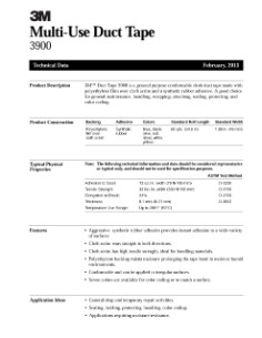 Originally developed for heating, ventilating and air conditioning (HVAC) applications, duct tape is used today in a variety of maintenance, repair and construction settings. Due to its unique design, our Multi-Purpose Duct Tape 3900 is an excellent choice for general indoor application in MRO/construction. The tape can be used at temperatures as high as 200°F for up to 30 minutes.