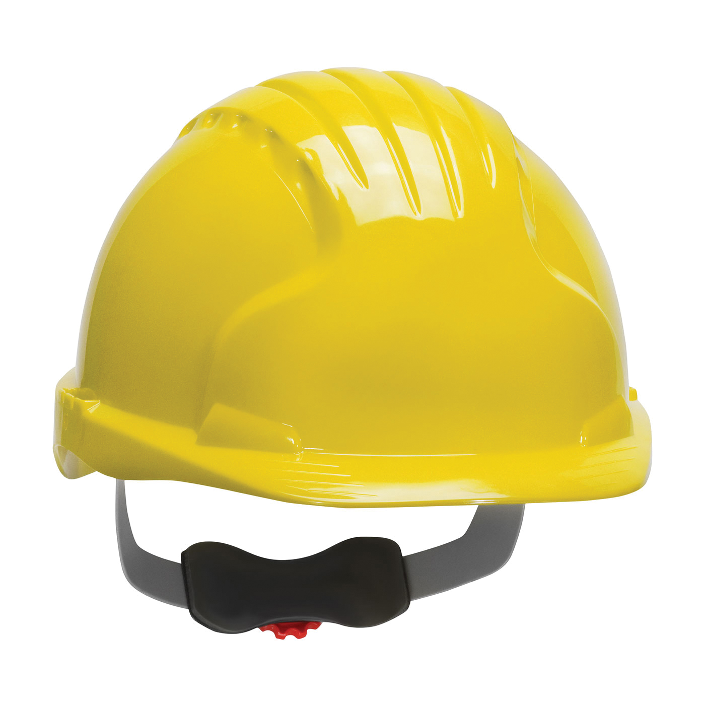 JSP® 280-EV6151-10 Evolution® Deluxe 6151 Non-Vented Short Brim Hard Hat, SZ 6-5/8 Fits Mini Hat, SZ 8 Fits Max Hat, HDPE, 6-Point Suspension, ANSI Electrical Class Rating: Class E, ANSI Impact Rating: Type I, Ratchet Adjustment