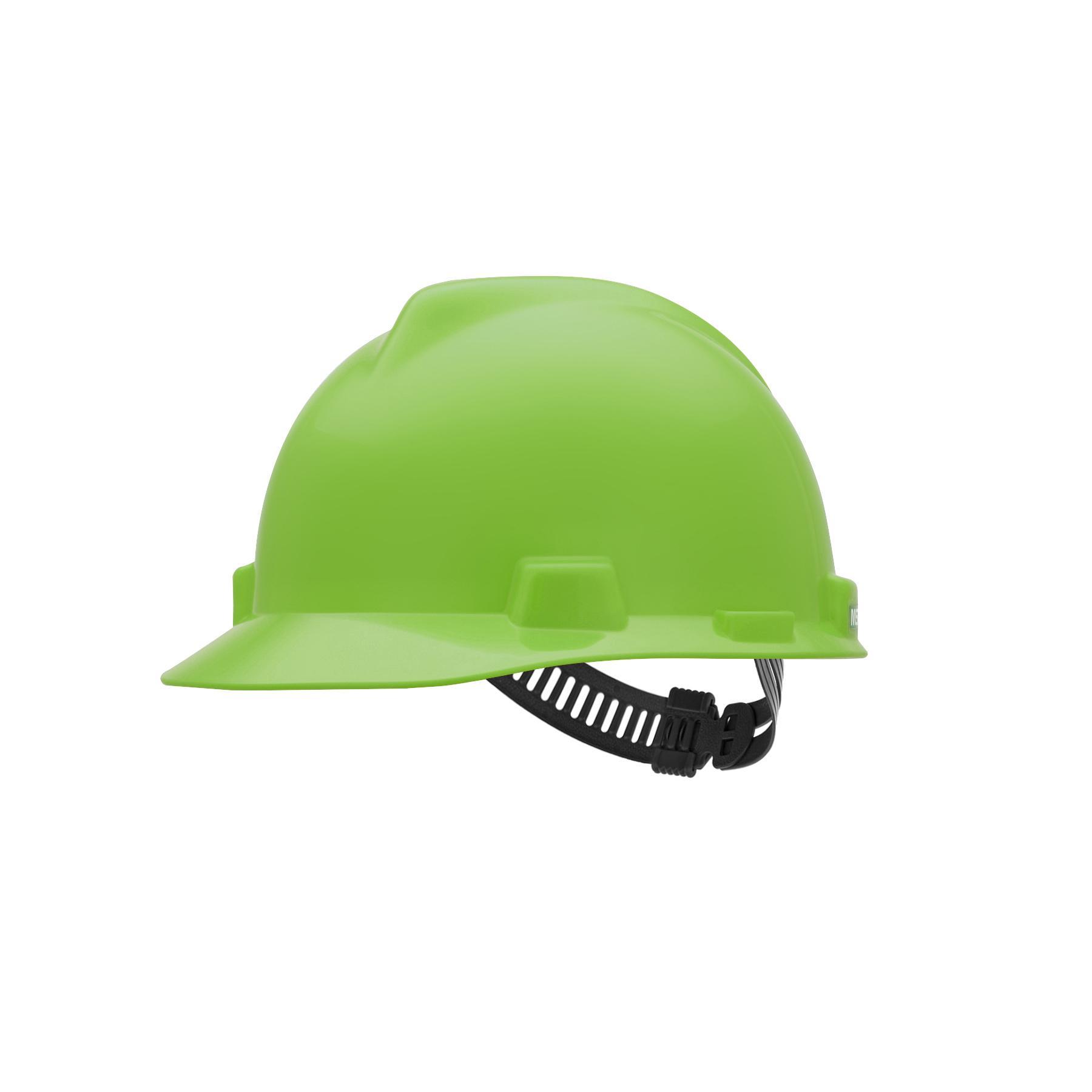 MSA V-Gard® 463942 Cap Style Hard Hat, SZ 6-1/2 Fits Mini Hat, SZ 8 Fits Max Hat, Polyethylene, 4-Point Staz-On® Suspension, ANSI Electrical Class Rating: Class E, ANSI Impact Rating: Type I, Pin Lock Adjustment