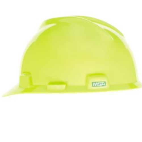 MSA V-Gard® 10057441 Front Brim Hard Hat, SZ 6-1/2 Fits Mini Hat, SZ 8 Fits Max Hat, Polyethylene, 1-Touch® Adjustment Suspension, ANSI Electrical Class Rating: Class E, ANSI Impact Rating: Type I