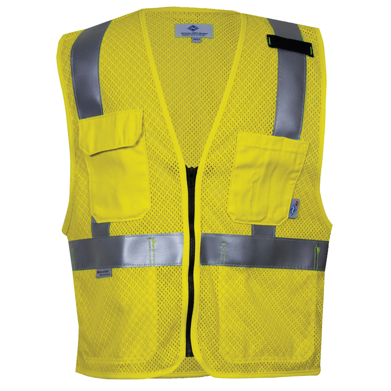 DRIFIRE®FR VNT99509M Deluxe Flame-Resistant Hi-Viz Safety Vest, M, Fluorescent Yellow, Anti-Static Modacrylic/Para-Aramid Mesh with Nega-Stat®, Zipper Closure, 4 Pockets, ANSI Class: Class 2, ASTM F1506-10a, ANSI/ISEA 107-2010 Type R