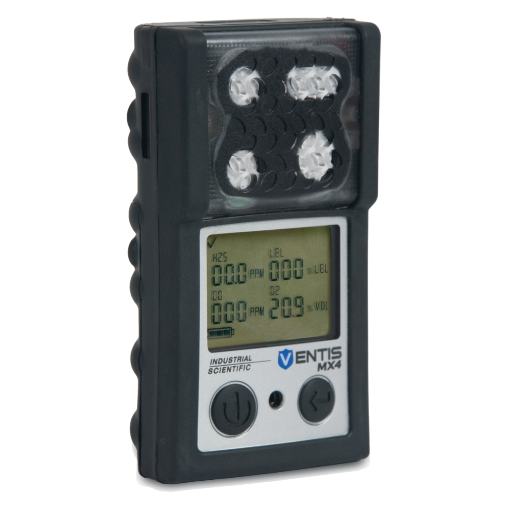 Industrial Scientific Ventis MX4 Multi-Gas Detector, Audible, Visual and Vibrating Alarm, Backlit LCD Display, -20 to 50 deg c, Polycarbonate with Protective Rubber Overmold Housing