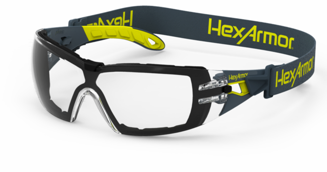 HexArmor® 11-12001-04 MX200G Series Safety Glass, TruShield®S Dual Action Anti-Fog/Anti-Scratch Lens Coating, Clear Lens, Polycarbonate Lens, Thermoplastic Polyurethane Frame