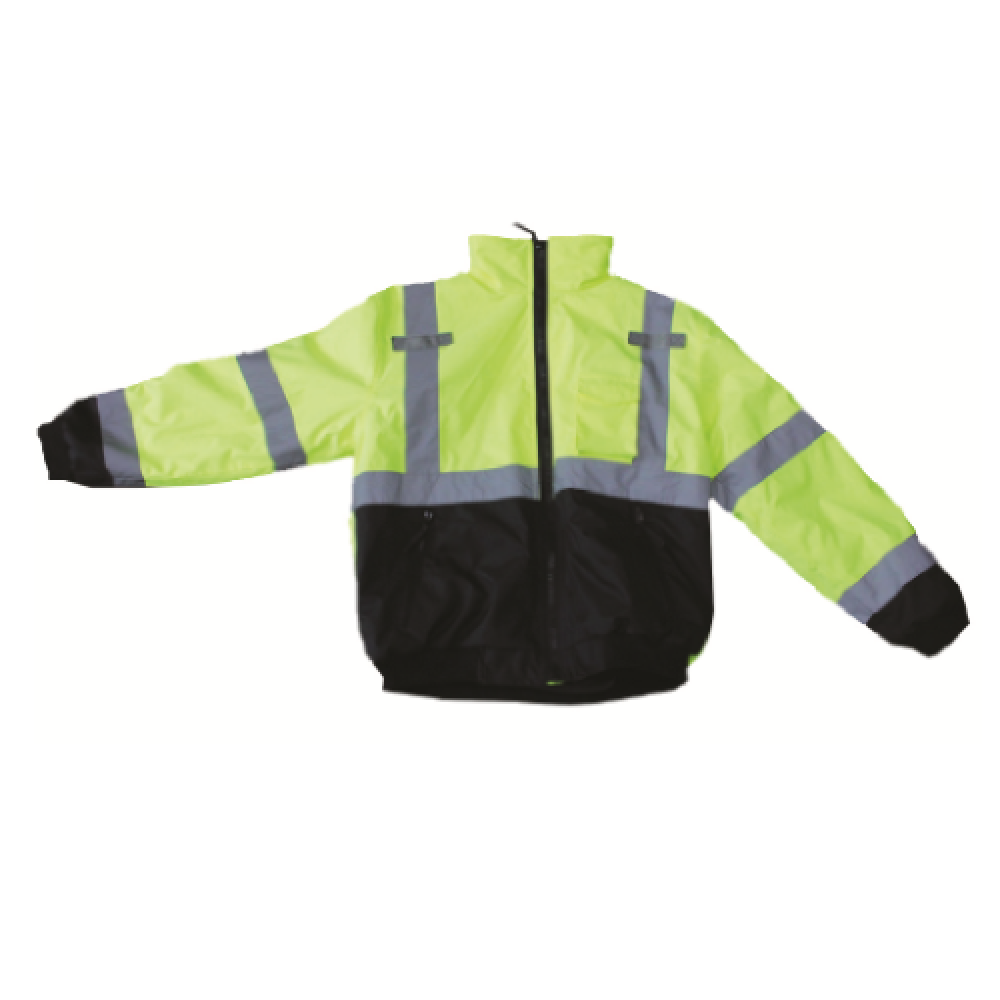 Diamond M DM-RFBJB3LY-LG DM-RFBJB3LY Lined Bomber Jacket, Large, Polyurethane Coated Polyester, High Visibility Lime and Black, Zipper Closure, ANSI Class 3