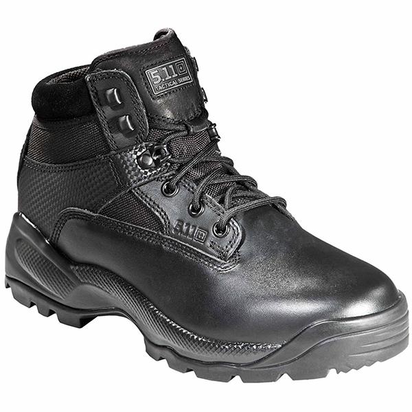 A favorite of law enforcement and special tactics teams throughout the world, the 5.11® 6" A.T.A.C.® Boot offers superior performance and durability while maintaining a professional profile. Accelerated side zip access allows quick on and off, minimizing prep time and eliminating the need to lace up or down. The toe is crafted from high-shine full grain polished leather, while the nylon upper offers rugged resilience and breathability that stands up to tough patrol environments. The moisture wicking lining and dual density foam cushioning offer support and comfort, while the oil-resistant no-squeak outsole ensures stealth and stability. The 6" A.T.A.C. Boot also incorporates our revolutionary 5.11 Shock Mitigation System® to provide maximum compression and rebound, increasing your speed, stamina, and traction on any surface. Renowned tactical boot in a professional profile Comfortable, sturdy, and highly tactical Side-zip access for easy on/of.