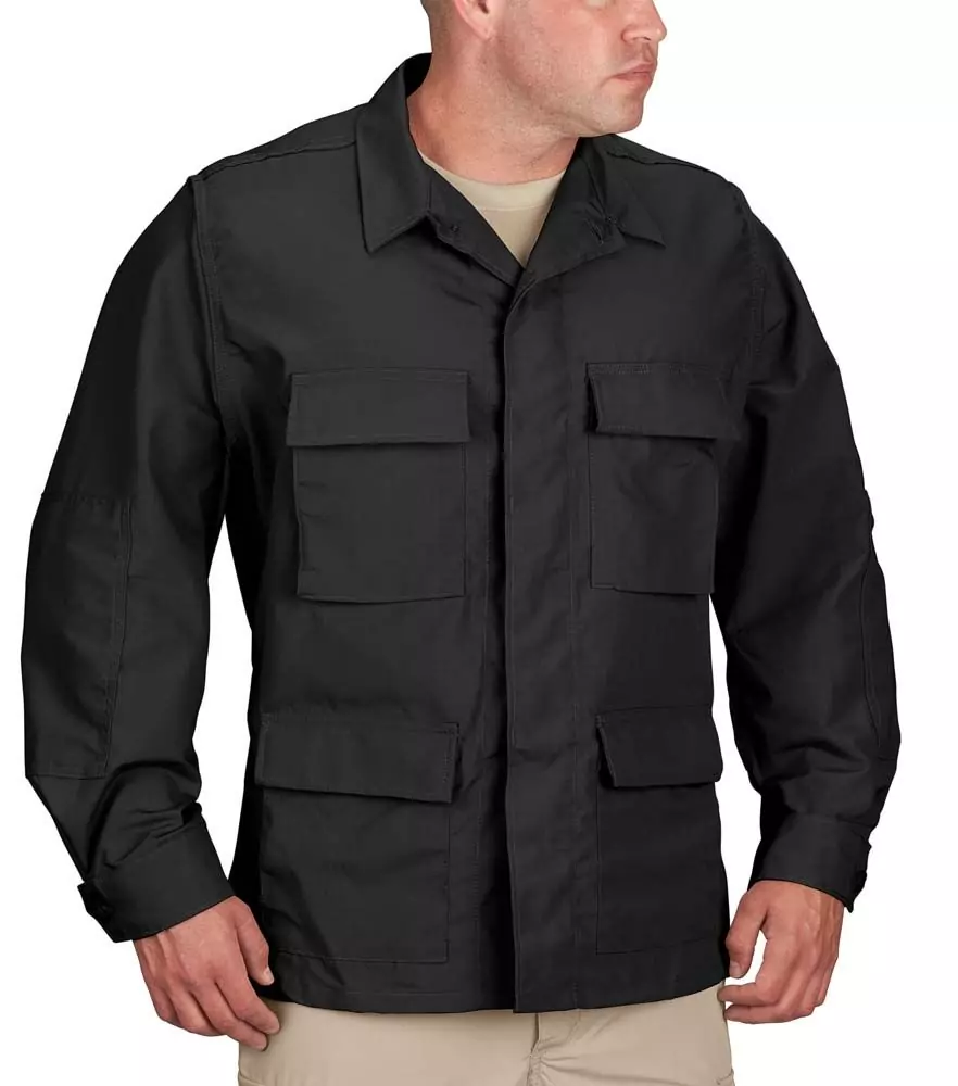 Propper® F545455 Series Cotton Ripstop BDU Coat, Men's, Medium, Black, 100 % Cotton Ripstop, 37 - 41 in Chest, Long Length, Button Closure, 4 Pockets