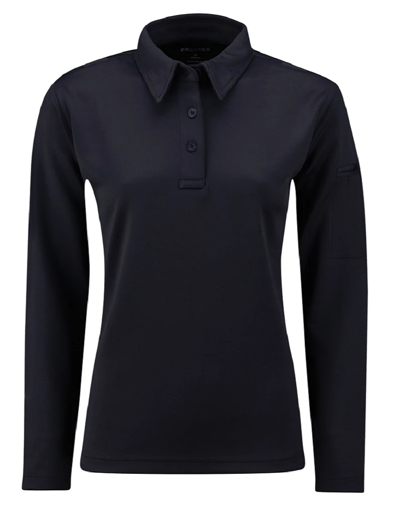 Propper® F5357 Series Women's Long Sleeve I.C.E.® Performance Polo, 32.5 - 33.5 in Chest, Button Closure, 6.8 oz Fabric Weight, Hooded No, X-Small, LAPD Navy, 94 % Polyester/6 % Spandex Interlock, Regular Length