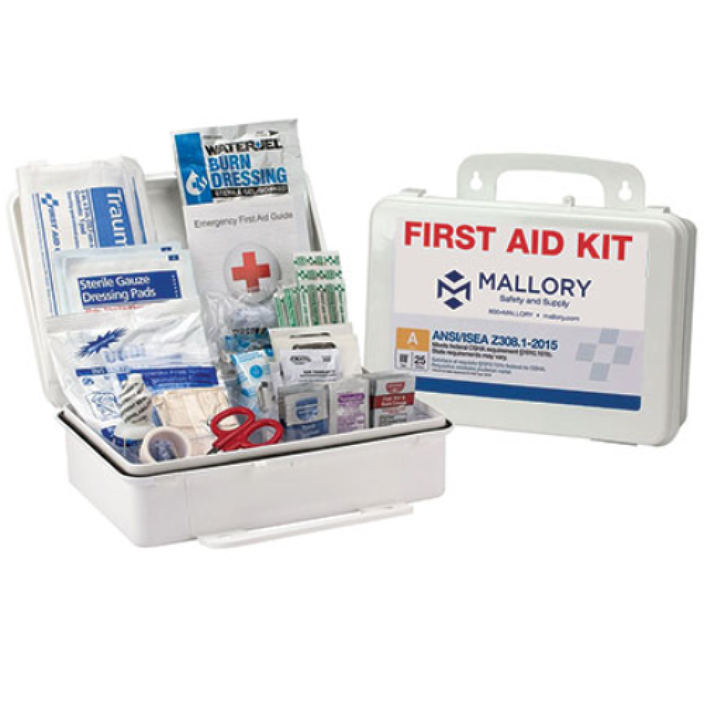 Mallory Safety First Aid Kit, Type III Bulk Class A Portable, Wall Mounting, 89 Bulk Packed Components, People Served: 25, Weatherproof Plastic Case, 9-1/2 in H x 6.5 in W x 3 in D