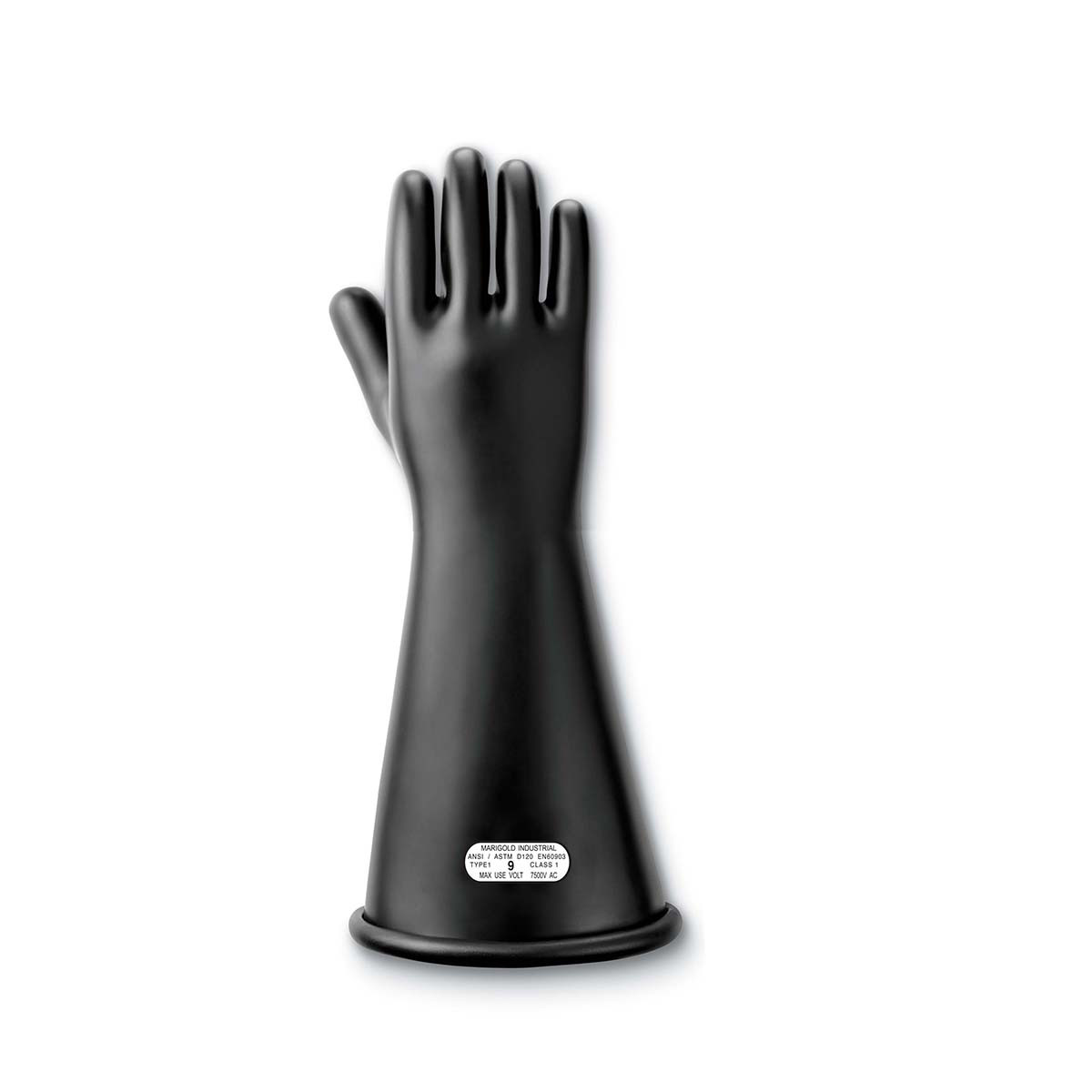 Marigold® HV Class 1 Rig Gloves, SZ 11, Rubber, Black, Straight Cuff, Latex Coating