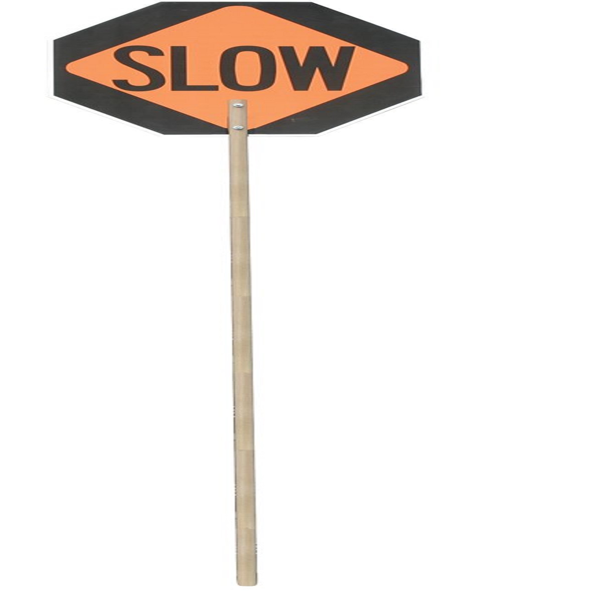 Accuform® Paddle Sign, Text, STOP/SLOW Legend, Reflective Aluminum/Wood Handle, 60 in Handle Height X 18 in Width, White on Red/Black on Orange