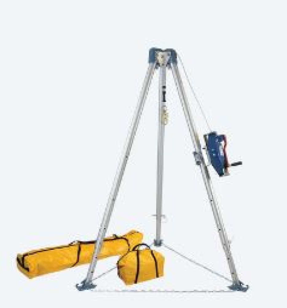 FallTech 7500 11'Confined Space Tripod System with 60' Galvanized Steel SRL-R, System Kit includes 11ft Tripod (7275), 60' galvanized steel cable SRL-R (7281), leg bracket and leg safety chain, 80" tripod and 20" Device storage bags.