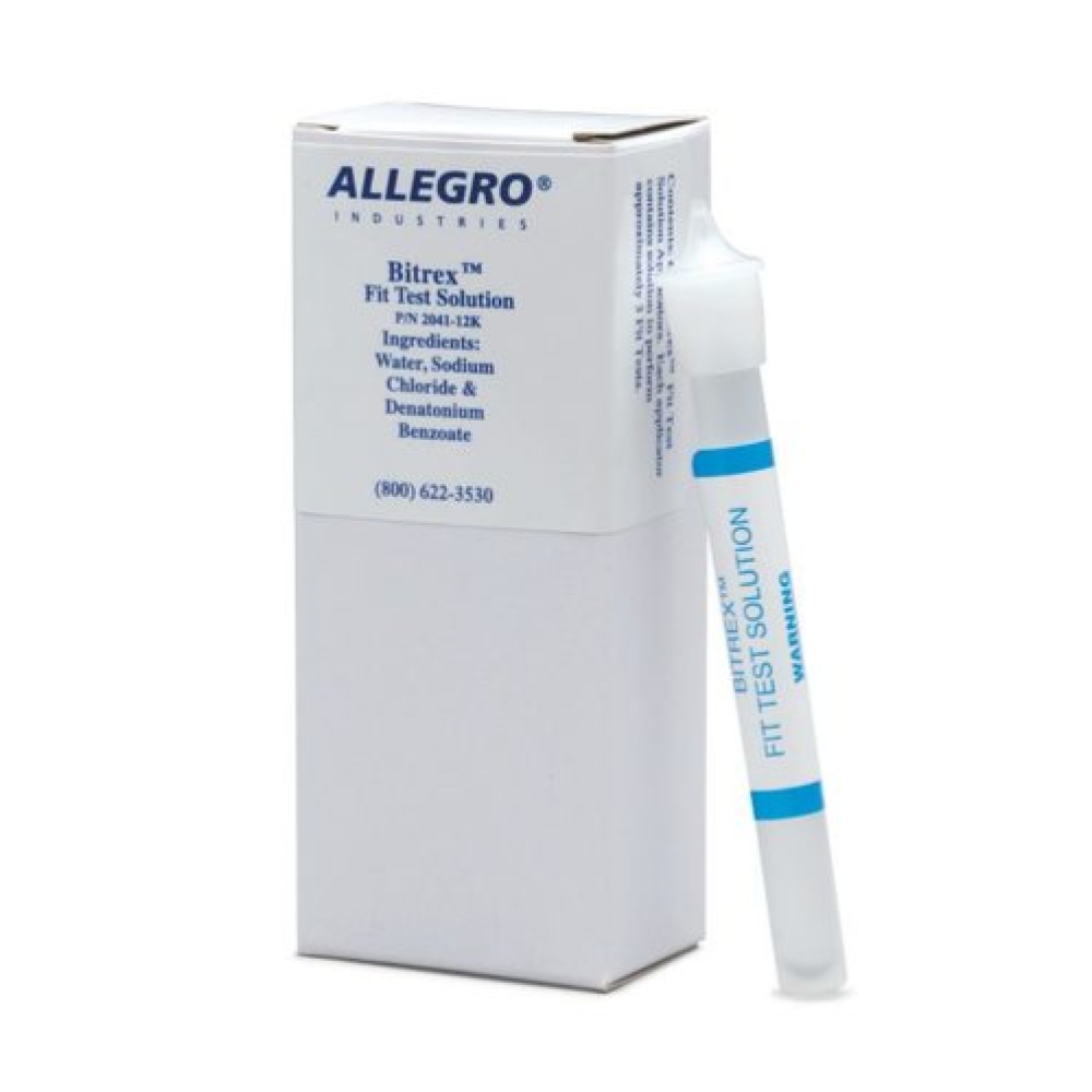 Replacement Bitrex Test Solution Is Offered In Glass Ampules With Pre-Drilled Plastic Cap For Easy Pouring. Plastic Protects Tester From Broken Glass. Each One Time Use Ampules Contains 2.5 Cc Of Solution Which Averages Between 3-5 Fit Test. Six Ampules Per Box. Allegro 2041-12K, Test Solution Only (Bitrex).