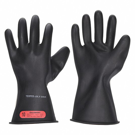 SALISBURY Class 0 11 Inch Low Voltage Electrical Insulating Rubber Gloves, Black, Leather Glove Must Be Worn over the Rubber Gloves, Size 9, Date Stamped