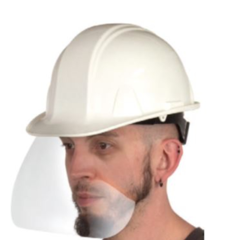 Wise Supply PPE Hard Hat Style Faceshield Durable mask attachment adheres to a variety of hardhats, baseball caps, and face masks for lasting protection. Shield is lightweight and clear for comfortable all-day wear and visibility. Being non-porous provides total splash and splatter protection. Fog-free it attaches to the inside of a hat rim, hard hat shell or the nose bridge of a face mask