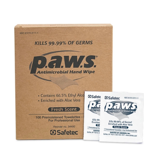 Formulated with 66.5% ethyl alcohol to help you meet CDC, APIC and OSHA handwashing recommendations. p.a.w.s.® wipes sanitize while removing soil and debris from hands, an important function in the absence of soap and water. Our convenient packaging options are great for first aid kits, the office, purses, bags, hospitals, vehicles and workshops. Make hand hygiene a priority at your facility! Provide p.a.w.s.® to your staff for effective, proven protection against potential infections and germs.