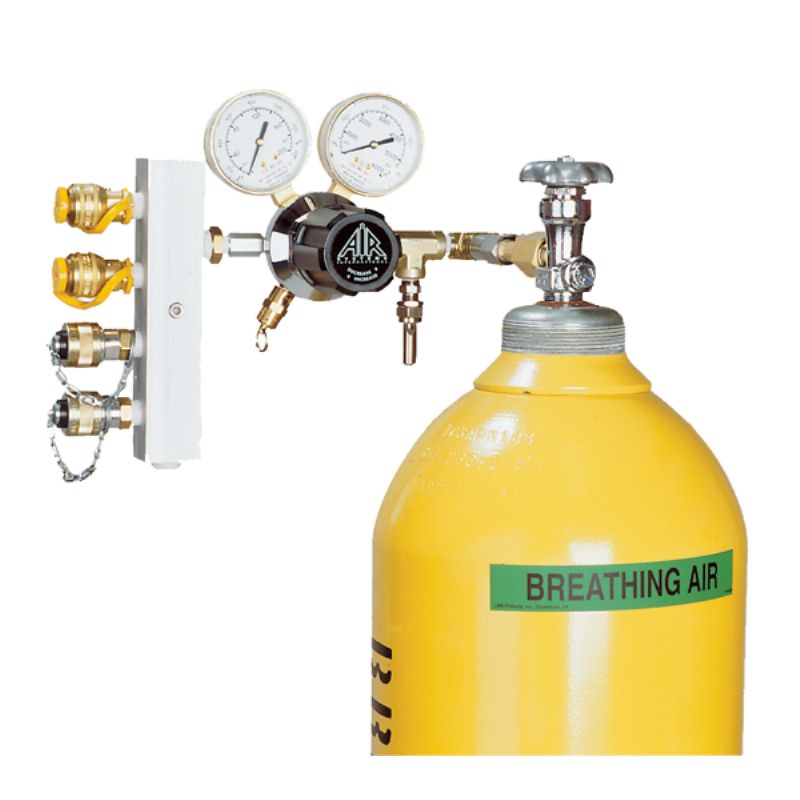 Air Systems Breathing Air Regulator Manifold, 4 Outlet, 3000 psi Pressure, Metal SCBA Harness, Plastic SCBA Backframe, For Use With AC-300, Gold