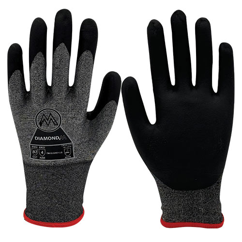 Diamond M DM-GL62421, 21-Gauge ANSI Cut A7 Seamless Knit Shell w/Black Micro-Foam Nitrile Palm Coating, Touchscreen Compatible