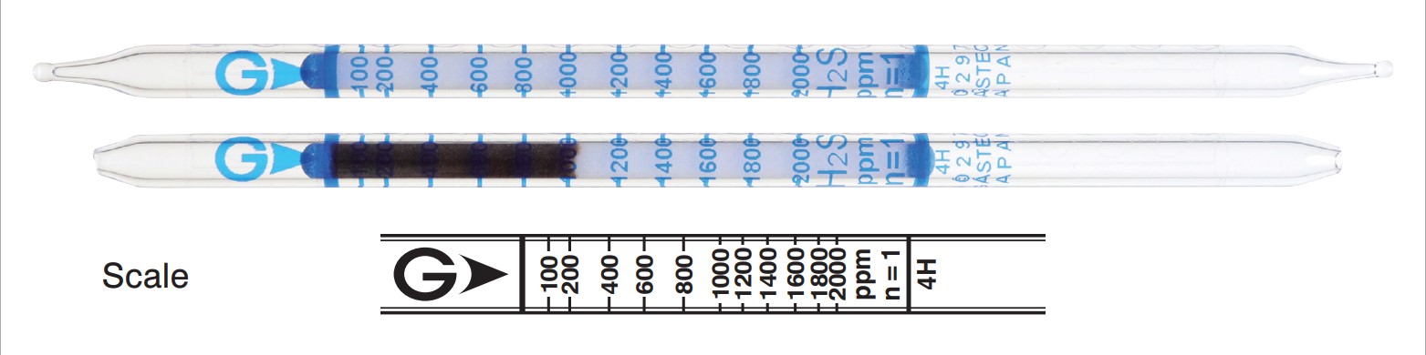 Gas Detector Tube, Short Term, Detects: Hydrogen Sulphide (H2S), 10 to 100 ppm, 100 to 2000 ppm, 2000 to 4000 ppm, Break-Off Tip, Glass, White to Brown