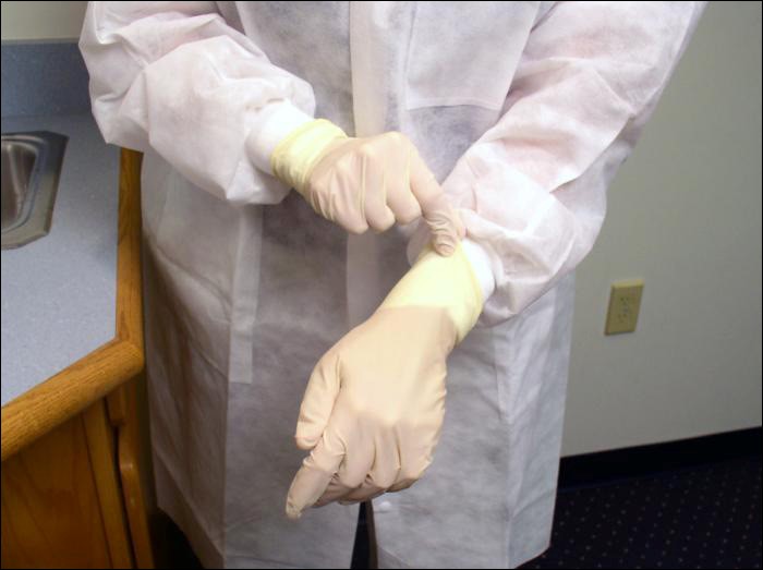 Workers who conduct cleaning tasks must be protected from exposure to blood, certain body fluids, and other potentially infectious materials covered by OSHA’s Bloodborne Pathogens standard (29 CFR 1910.1030) and from hazardous chemicals used in these tasks. In these cases, the PPE (29 CFR 1910 Subpart I) and Hazard Communication (29 CFR 1910.1200) standards may also apply. Do not use compressed air or water sprays to clean potentially contaminated surfaces, as these techniques may aerosolize infectious material.See the interim guidance for specific worker groups and their employers, below, for further information.
